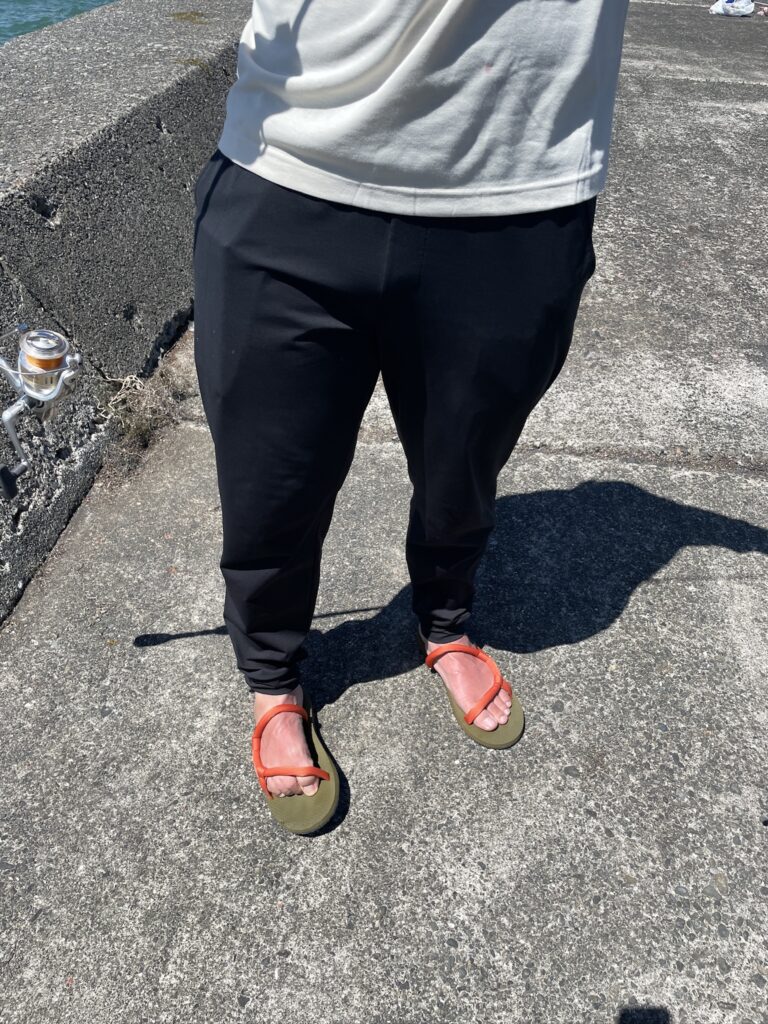 旦那はモンベルで購入したサンダルを履いて釣りをしましたが、足に日焼け止めを塗るのを忘れて焼けてしまい、大変なことになってました…。