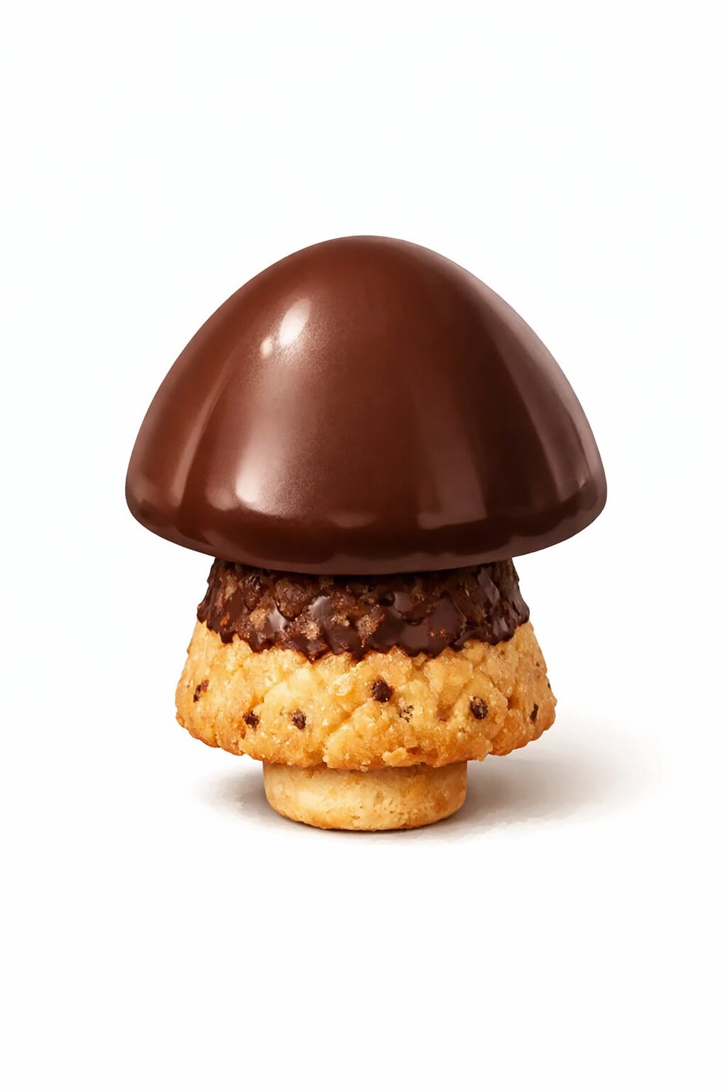 たけのこの里の三角っぽい土台の上に、きのこの山の傘のようなチョコがのっている形です。